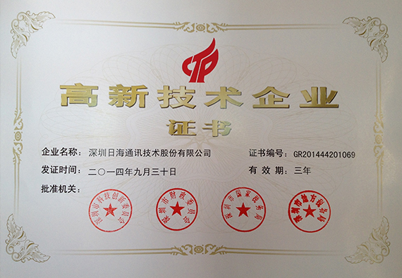 • 日海智能荣膺“国家火炬中心重点高新技术企业”认定